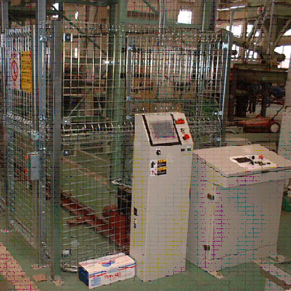 造形機から出てくる中子(パレットに搭載)を搬送・保管し鋳造ラインの要求とタイミングに合わせ出庫・供給する設備。自動倉庫スタッカクレーンとラックはシステムに合わせて大手の物流機器メーカから購入し、搬送設備と制御システム(管理機とクレーン・搬送設備PLC制御)を行う。