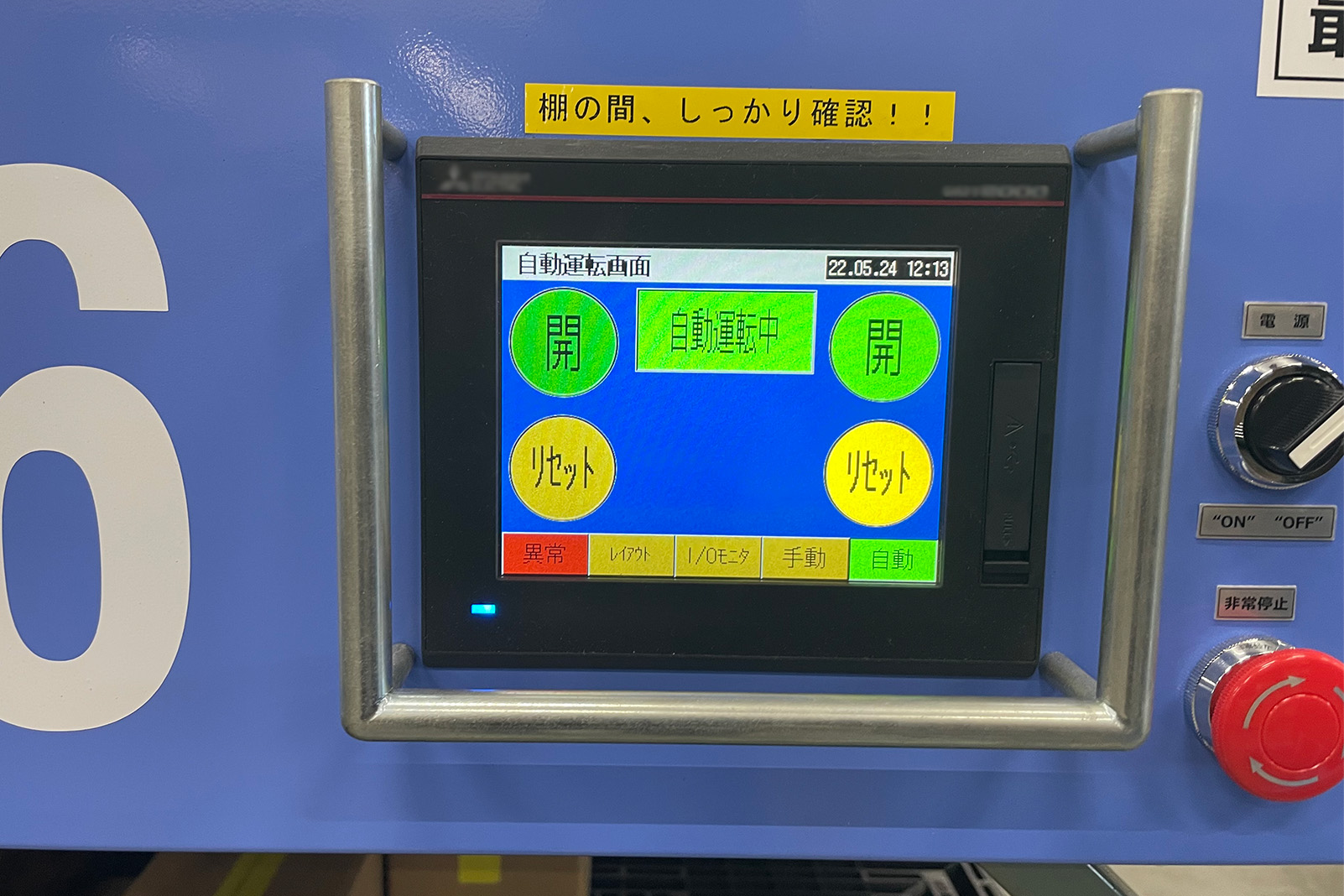 20年以上使用した移動棚設備の制御リプレース(制御盤、操作盤)を行った例 (納入先:神奈川県多摩運送殿向け)移動棚制御リプレースでは、30年以上前の設備のリレー式制御盤を最新のPLCに交換、駆動系にはインバータを入れ移動速度の高速化を図るリニューアル等の実績もあります。